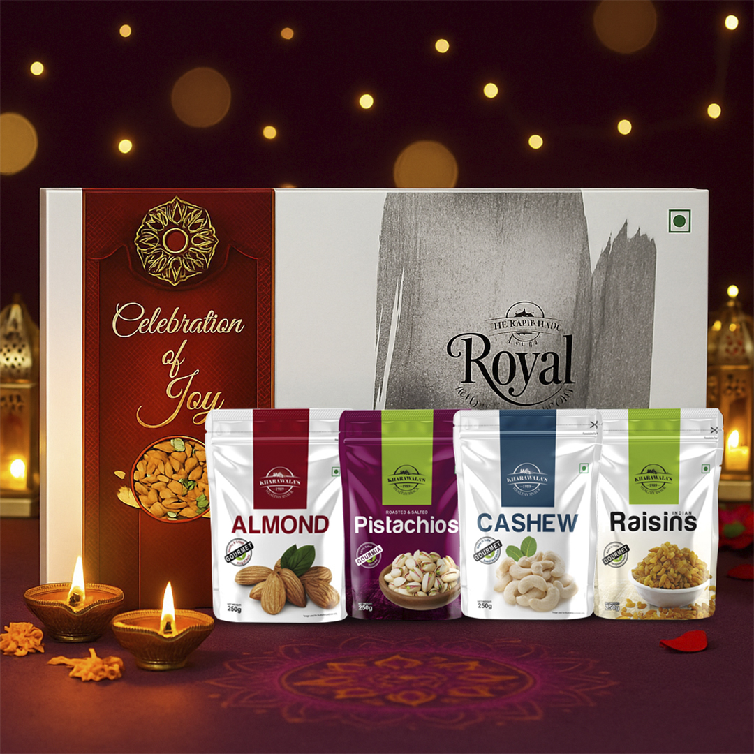Utility: Perfect for festive gifting, employee rewards, or client appreciation, this box combines classic dry fruits with salted treats, offering a blend of indulgence and tradition that is universally loved.