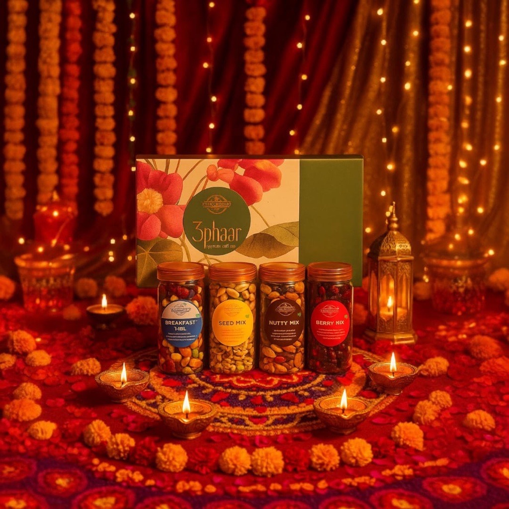 Utility: Ideal for corporate and festive gifting, this box conveys thoughtfulness by combining health and taste. With nutrient-rich mixes suited for any time of the day, it serves as a meaningful gift for employees, clients, or families who appreciate premium and mindful snacking options.